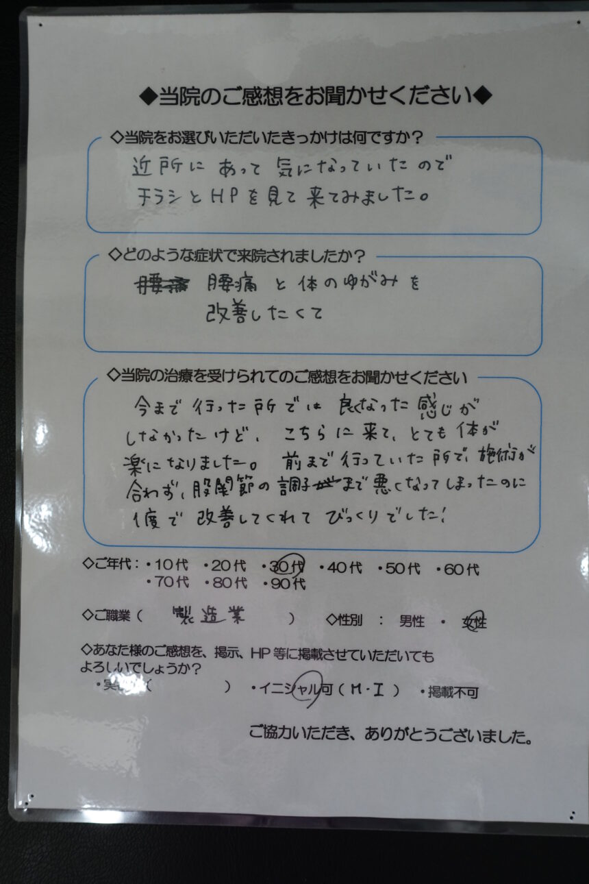 チラシを3回くらいいただいて、効果を試したくなり、来院しました。